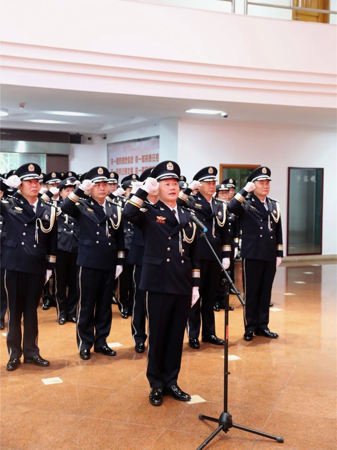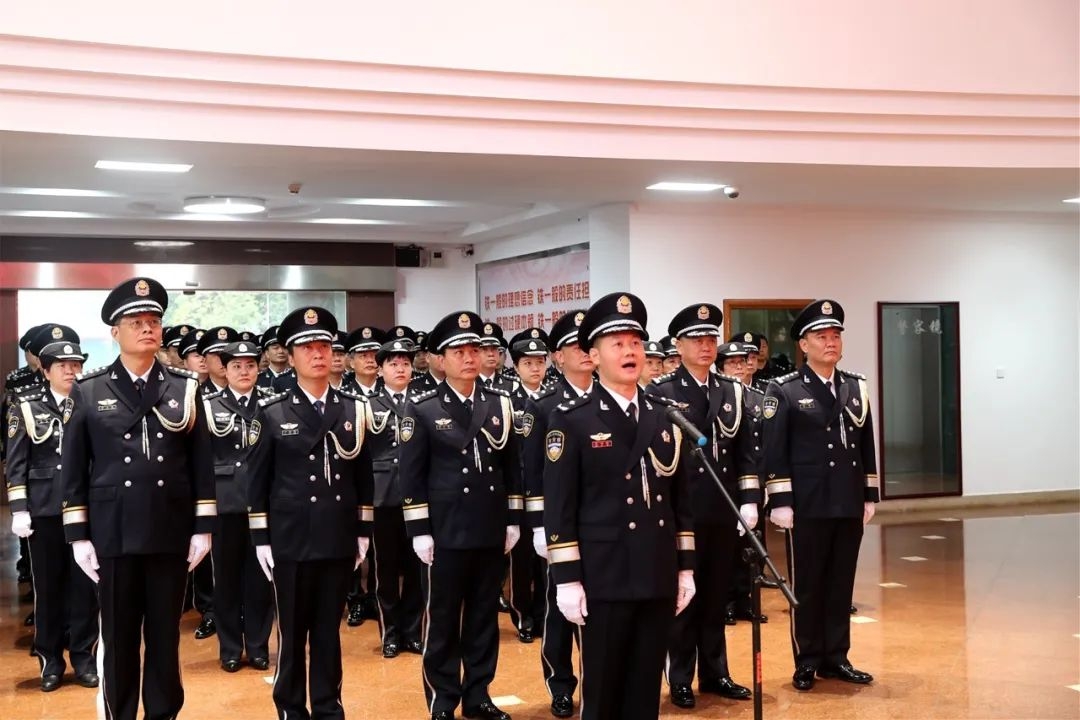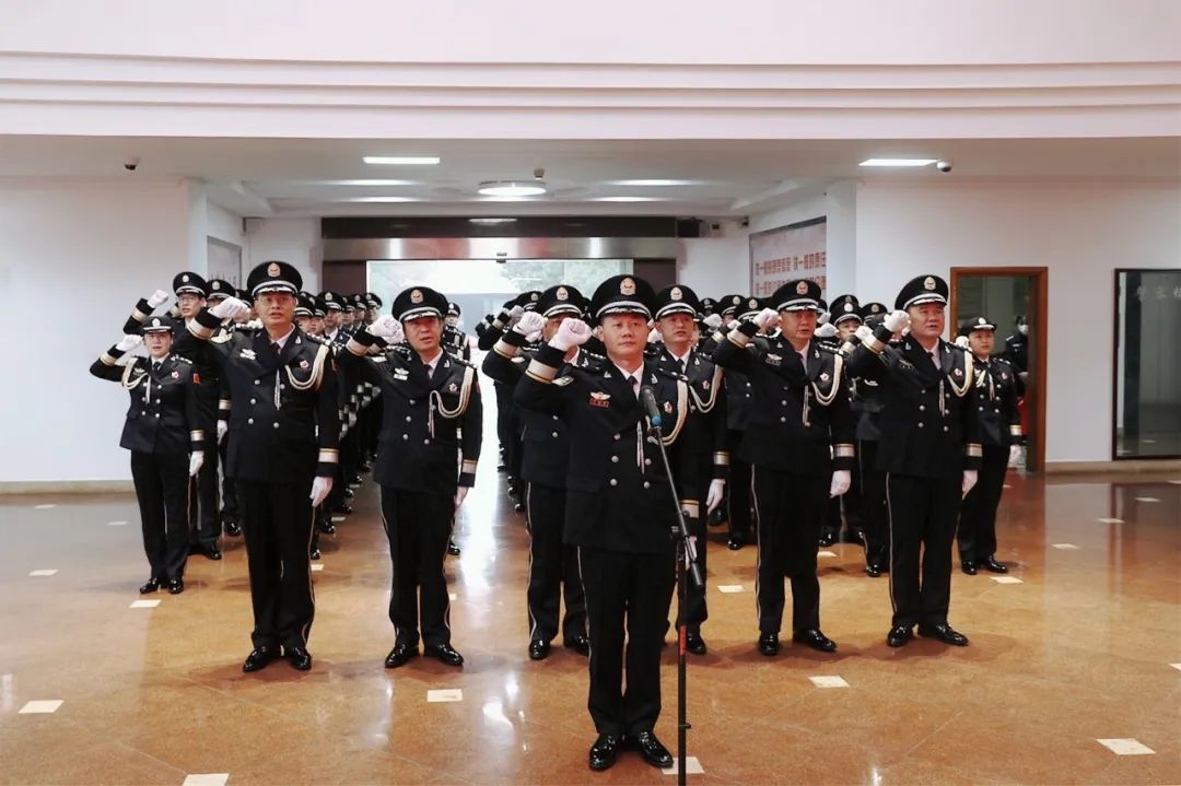 警徽閃耀,全體同志舉起右拳重溫入警誓詞,面向警徽莊嚴(yán)宣誓。洪亮的聲音、堅(jiān)毅的目光、崇高的信仰,彰顯出了梅縣公安永葆初心,牢記使命,鏗鏘誓詞,激發(fā)磅礴奮進(jìn)的力量,誓為公安事業(yè)奮斗終身的忠誠(chéng)擔(dān)當(dāng)。