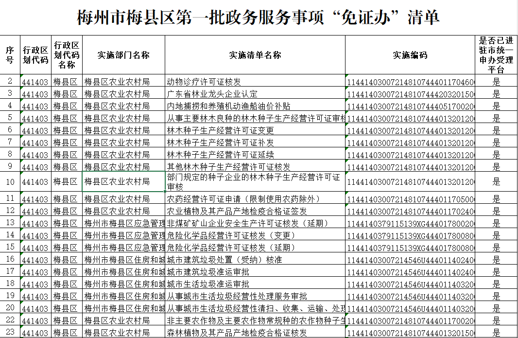 梅州市梅縣區(qū)第一批政務(wù)服務(wù)事項(xiàng)“免證辦”清單