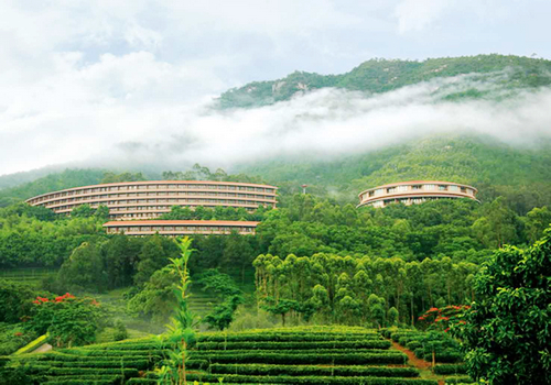 山清水秀的雁南飛是梅州唯一的5A級(jí)旅游景區(qū),擁有得天獨(dú)厚的自然環(huán)境,種植茶葉、水果3100 多畝,園林綠化900 多畝,引進(jìn)了814 種世界各國(guó)的茶樹(shù)品種和近千種的茶花品種,興建了具有客家特色的圍龍大酒店、圍龍食府等旅游服務(wù)設(shè)施。此外,雁南飛茶田一直以鮮花滿園、四季如春的優(yōu)美環(huán)境名聞遐邇。在注重生態(tài)資源的保護(hù)與堅(jiān)持“只種樹(shù)、不砍樹(shù)、黃土不露天”開(kāi)發(fā)理念的指引下,雁南飛茶田原生態(tài)景觀和野生動(dòng)植物資源得到妥善保護(hù)。據(jù)統(tǒng)計(jì),示范區(qū)內(nèi)有維管束植物183 科、489 屬、814 種,有野生動(dòng)物100多種,另外,景區(qū)每年還培育60萬(wàn)盆鮮花美化、綠化、香化環(huán)境。