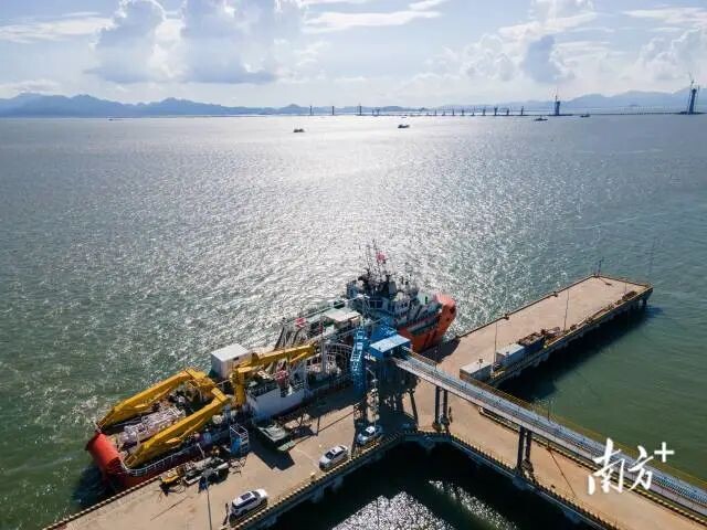 ▲廣東第一艘海纜施工裝船“豐華21號(hào)”準(zhǔn)備出海作業(yè)。