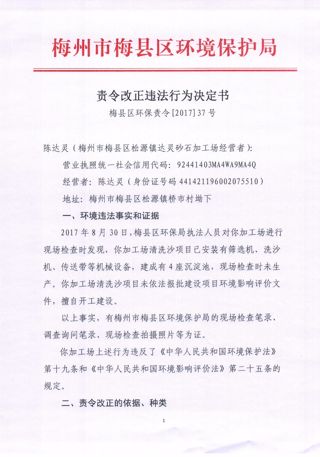 梅縣區(qū)環(huán)保責(zé)令[2017]37號(hào)