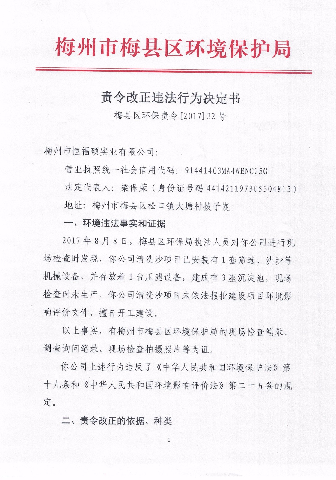 梅縣區(qū)環(huán)保責(zé)令[2017]32號