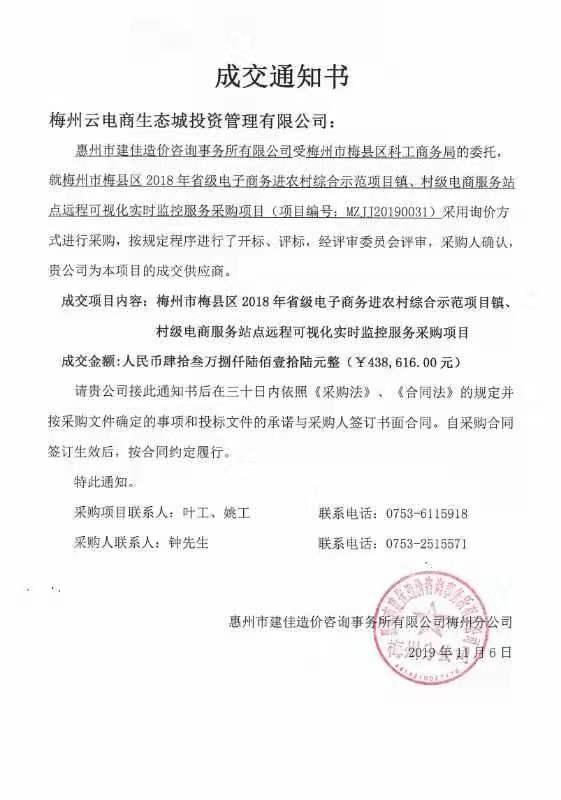 梅縣區(qū)電商服務站點遠程可視化實施監(jiān)控系統(tǒng)中標公告